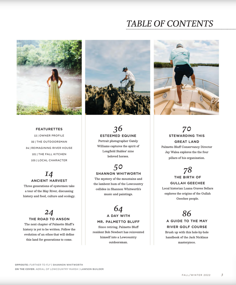 Bluff MagazineBen WeissNov 1, 20221 min readUpdated: Apr 7, 2023The Arts InitiativeFall/Winter 2022Story and Photographs by Hailey WistView The Full Magazine Full Palmetto Bluff Fall/Winter 2022 Magazine
